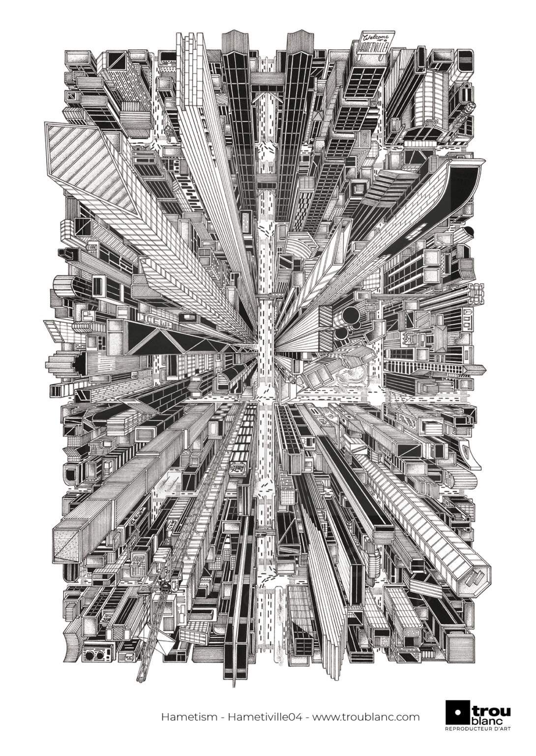 Hametiville est une ville imaginaire qui se situe dans un futur proche, elle puise son inspiration des plus grandes métropoles, la concentration de ses buildings et ses habitants.
