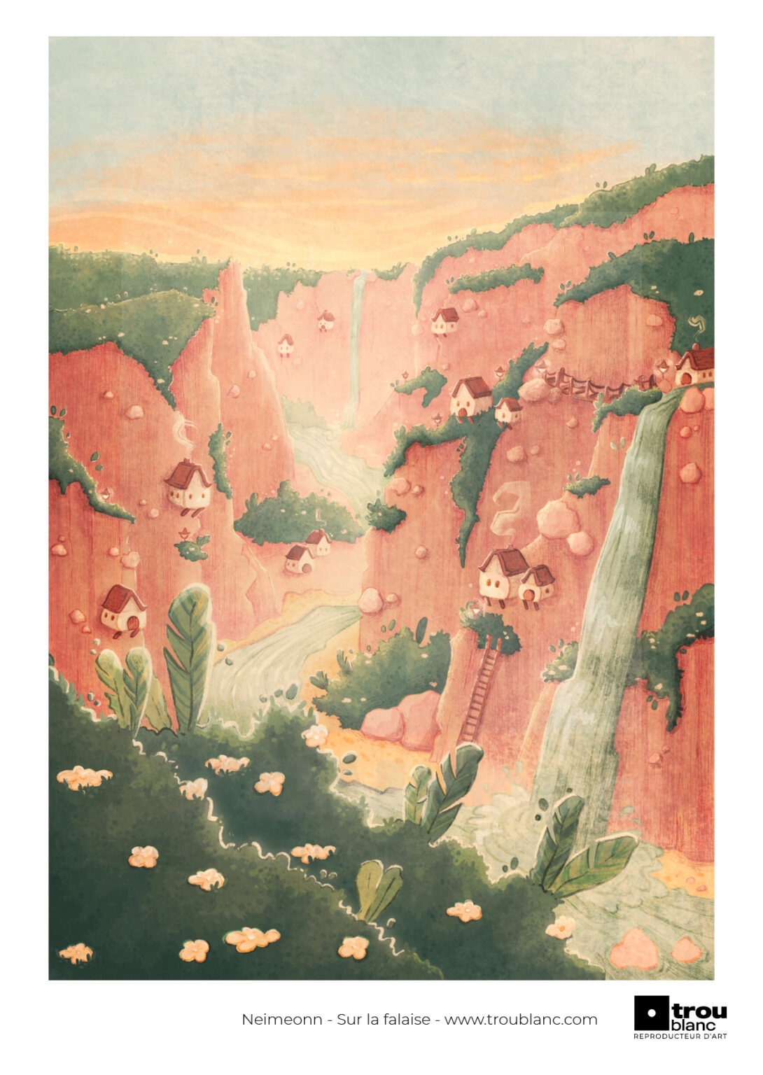 Au sommet de la falaise, le vent souffle doucement, faisant onduler les herbes et les fleurs sauvages. Seul le bruit des cascades rompt le silence de ce lieu figé hors du temps.